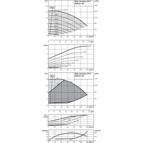 Базовое значение MEI для насосов с оптимальным КПД ≥ 0,70.КПД насоса с откорректированным рабочим колесом, как правило, ниже КПД насоса с полным диаметром рабочего колеса. За счет корректировки рабочего колеса насос настраивается на определенную рабочую точку, в результате чего снижается энергопотребление. Индекс минимальной эффективности (MEI) относится к полному диаметру рабочего колеса.При различных рабочих точках данный насос может работать эффективнее и экономичнее, если, например, управление его работой осуществляется путем регулирования переменной частоты вращения, благодаря которому насос адаптируется к характеристикам соответствующей системы.Информацию по базовому значению эффективности см. на интернет-странице www.europump.org/efficiencycharts.На насосы, потребляющие мощность > 150 кВт, или имеющие подачу QBEP < 6 м3/ч, не распространяются требования по экологическому проектированию водяных насосов. Поэтому значение MEI не указывается.