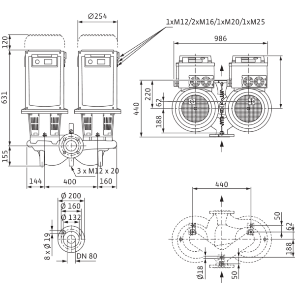 Циркуляционный насос с сухим ротором в исполнении Inline с фланцевым соединением Wilo CronoTwin-DL-E 80/150-7,5/2