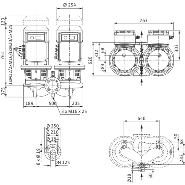 Циркуляционный насос с сухим ротором в исполнении Inline с фланцевым соединением Wilo CronoTwin-DL-E 125/220-7,5/4-R1