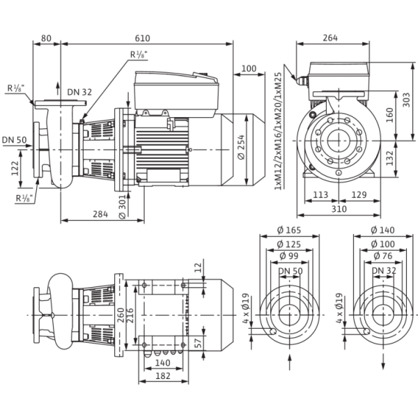 - Спиральный корпус блочного типа с размерами фланцев и корпуса согласно DIN EN 733, а также фланцами PN 16 согласно EN 1092-2