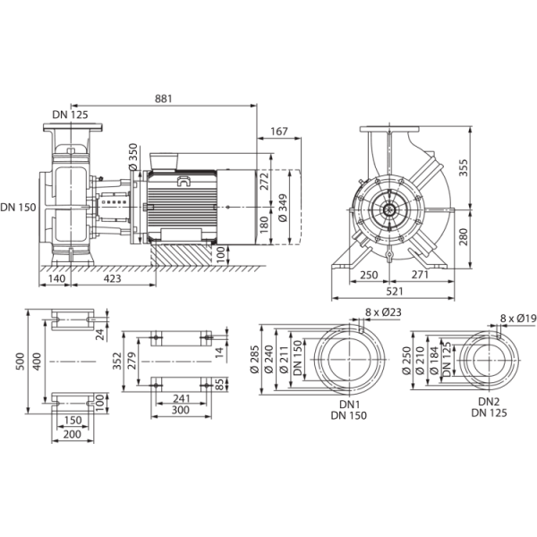 Допустимый диапазон температур перекачиваемой жидкости от -20° C до +140° CЭлектроподключение к сети 3~400 В, 50 Гц (другие по запросу)Класс защиты IP55Номинальный диаметр от DN 32 до DN 150Макс. рабочее давление 16 бар (опционально 25 бар по запросу)