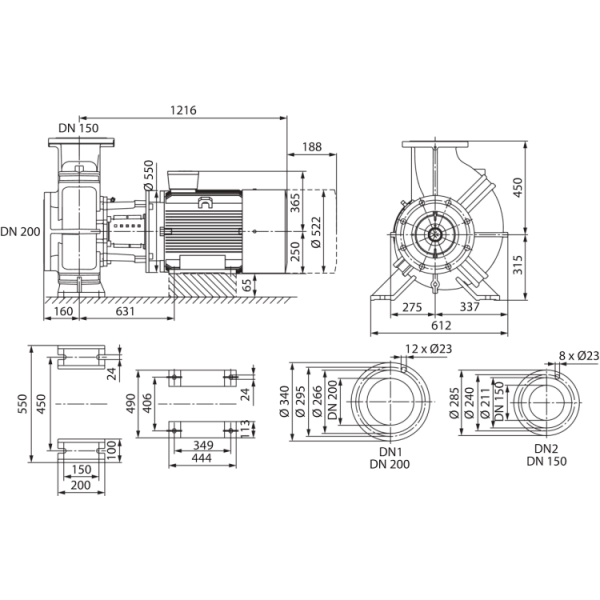 Одноступенчатый центробежный насос с сухим ротором блочного типа для установки на фундаменте. Блочное исполнение с низким уровнем шума и вибрации с промежуточным корпусом и неподвижно присоединенным унифицированным (стандартным) электродвигателем. С не зависящим от направления вращения сильфонным скользящим торцевым уплотнением (от 37 кВт/4-контактного и 45 кВт/2-контактного с картриджным торцевым уплотнением в системе Back-Pull-Out для замены скользящего торцевого уплотнения без демонтажа электродвигателя) и снижающим кавитацию рабочим колесом. Фланцы имеют штуцеры R 1/8 для измерения давления. На корпус насоса и промежуточный корпус нанесено катафорезное покрытие. Серийные электродвигатели с технологией IE3.