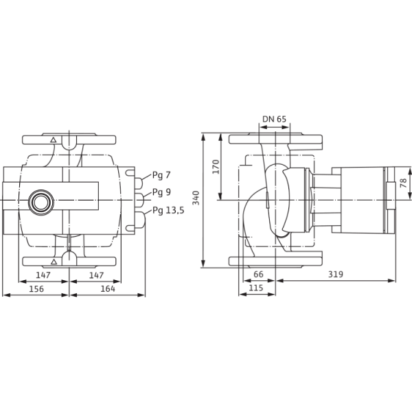 - Стандартное исполнение для насосов DN 32 - DN 65: комбинированный фланец PN 6/10 (фланец PN 16 согласно EN 1092-2) для контрфланцев PN 6 и PN 16