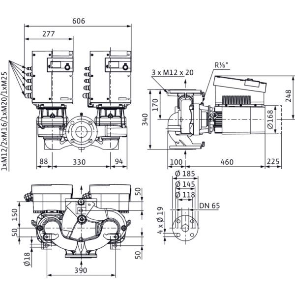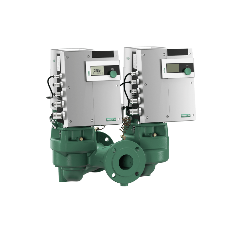 Высокоэффективный сдвоенный линейный насос с электронно-коммутируемым двигателем и электронной мощности с сухим ротором. Исполнение в качестве одноступенчатого низконапорного центробежного насоса с фланцевым подсоединением и скользящим торцовым уплотнением.