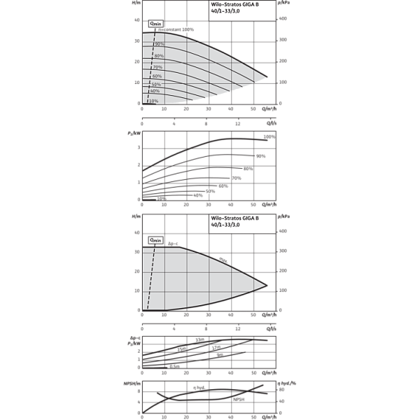Базовое значение MEI для насосов с оптимальным КПД ≥ 0,70.КПД насоса с откорректированным рабочим колесом, как правило, ниже КПД насоса с полным диаметром рабочего колеса. За счет корректировки рабочего колеса насос настраивается на определенную рабочую точку, в результате чего снижается энергопотребление. Индекс минимальной эффективности (MEI) относится к полному диаметру рабочего колеса.При различных рабочих точках данный насос может работать эффективнее и экономичнее, если, например, управление его работой осуществляется путем регулирования переменной частоты вращения, благодаря которому насос адаптируется к характеристикам соответствующей системы.Информацию по базовому значению эффективности см. на интернет-странице www.europump.org/efficiencycharts.На насосы, потребляющие мощность > 150 кВт, или имеющие подачу QBEP < 6 м3/ч, не распространяются требования по экологическому проектированию водяных насосов. Поэтому значение MEI не указывается.
