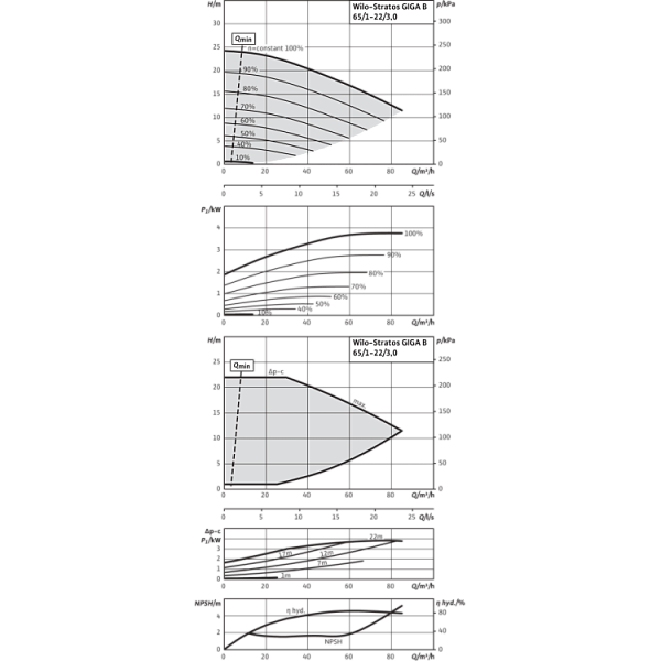 Базовое значение MEI для насосов с оптимальным КПД ≥ 0,70.КПД насоса с откорректированным рабочим колесом, как правило, ниже КПД насоса с полным диаметром рабочего колеса. За счет корректировки рабочего колеса насос настраивается на определенную рабочую точку, в результате чего снижается энергопотребление. Индекс минимальной эффективности (MEI) относится к полному диаметру рабочего колеса.При различных рабочих точках данный насос может работать эффективнее и экономичнее, если, например, управление его работой осуществляется путем регулирования переменной частоты вращения, благодаря которому насос адаптируется к характеристикам соответствующей системы.Информацию по базовому значению эффективности см. на интернет-странице www.europump.org/efficiencycharts.На насосы, потребляющие мощность > 150 кВт, или имеющие подачу QBEP < 6 м3/ч, не распространяются требования по экологическому проектированию водяных насосов. Поэтому значение MEI не указывается.