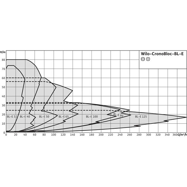 Одноступенчатый центробежный насос с сухим ротором блочного типа для установки на фундаменте со встроенным частотным преобразователем для электронного регулирования в т. ч. постоянного или изменяемого перепада давления (Δp-c/ Δp-v). Устройство CronoBloc-BL-E предназначено для перекачивания воды систем отопления (согласно VDI 2035), холодной воды и водогликолевых смесей без абразивных веществ в системах отопления, кондиционирования и охлаждения.