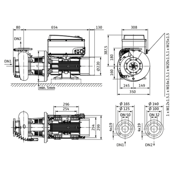 - Одноступенчатый низконапорный насос с неразъемным валом блочной конструкции, включая опору на корпусе насоса