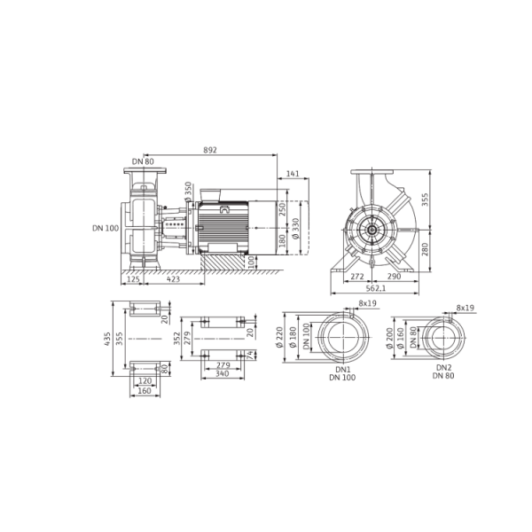 Одноступенчатый центробежный насос с сухим ротором блочного типа для установки на фундаменте. Блочное исполнение с низким уровнем шума и вибрации с промежуточным корпусом и неподвижно присоединенным унифицированным (стандартным) электродвигателем. С не зависящим от направления вращения сильфонным скользящим торцевым уплотнением с принудительным омыванием (начиная с исполнения «37 кВт/4 полюса» — опционально с картриджным торцевым уплотнением в системе Back-Pull-Out для замены скользящего торцевого уплотнения без демонтажа электродвигателя) и снижающим кавитацию рабочим колесом. Фланцы со штуцерами для измерения давления R 1/8. На корпус насоса и соединительную скобу нанесено катафорезное покрытие.