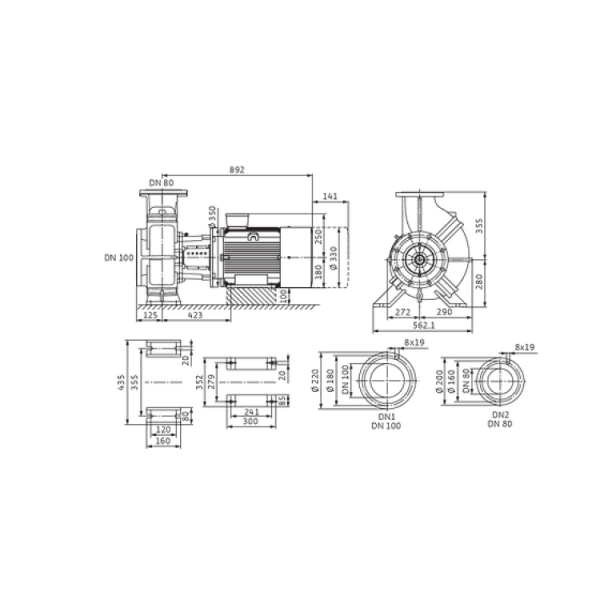 Одноступенчатый центробежный насос с сухим ротором блочного типа для установки на фундаменте. Блочное исполнение с низким уровнем шума и вибрации с промежуточным корпусом и неподвижно присоединенным унифицированным (стандартным) электродвигателем. С не зависящим от направления вращения сильфонным скользящим торцевым уплотнением с принудительным омыванием (начиная с исполнения «37 кВт/4 полюса» — опционально с картриджным торцевым уплотнением в системе Back-Pull-Out для замены скользящего торцевого уплотнения без демонтажа электродвигателя) и снижающим кавитацию рабочим колесом. Фланцы со штуцерами для измерения давления R 1/8. На корпус насоса и соединительную скобу нанесено катафорезное покрытие.