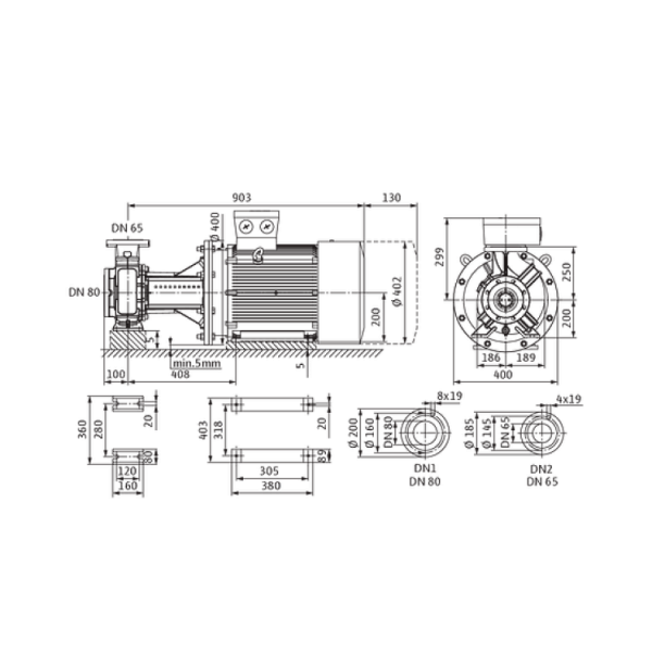 Одноступенчатый центробежный насос с сухим ротором блочного типа для установки на фундаменте. Блочное исполнение с низким уровнем шума и вибрации с промежуточным корпусом и неподвижно присоединенным унифицированным (стандартным) электродвигателем. С не зависящим от направления вращения сильфонным скользящим торцевым уплотнением с принудительным омыванием (начиная с исполнения «37 кВт/4 полюса» — опционально с картриджным торцевым уплотнением в системе Back-Pull-Out для замены скользящего торцевого уплотнения без демонтажа электродвигателя) и снижающим кавитацию рабочим колесом. Фланцы со штуцерами для измерения давления R 1/8. На корпус насоса и соединительную скобу нанесено катафорезное покрытие.
