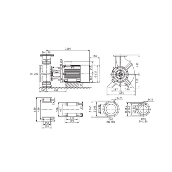 - Корпус насоса и фонарь: Стандартное исполнение: EN-GJL-250; опционально: Чугун с шаровидным графитом EN-GJS-400-18-LT (в зависимости от типа)