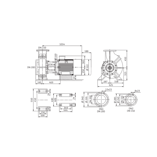 - Корпус насоса и фонарь: Стандартное исполнение: EN-GJL-250; опционально: Чугун с шаровидным графитом EN-GJS-400-18-LT (в зависимости от типа)