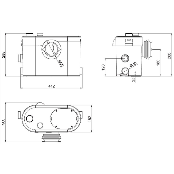 Оснащенная режущим механизмом, готовая к подключению автоматическая малогабаритная напорная установка для водоотведения, соответствующая стандарту EN 12056-4 с измельчителем, всеми необходимыми управляющими устройствами, обратным клапаном, фильтром с активированным углем, упругим поворотным напорным штуцером. Возможность подключения к унитазу и к трем дополнительным источника стока. FWC имеет фронтальное соединение с унитазом. Значение рН перекачиваемой жидкости 4-10.