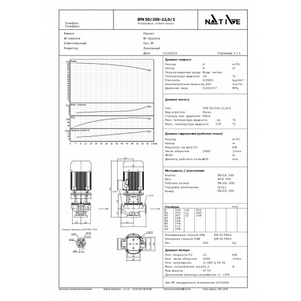 Циркуляционный насос Wilo Native IPN 50/250-22,0/2