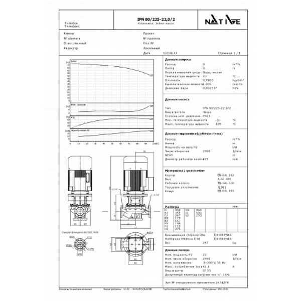 Циркуляционный насос Wilo Native IPN 80/225-22,0/2