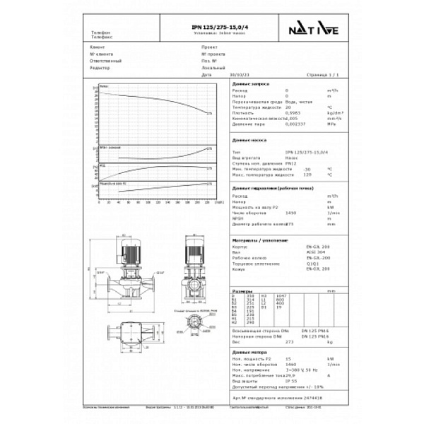 Циркуляционный насос Wilo Native IPN 125/275-15,0/4