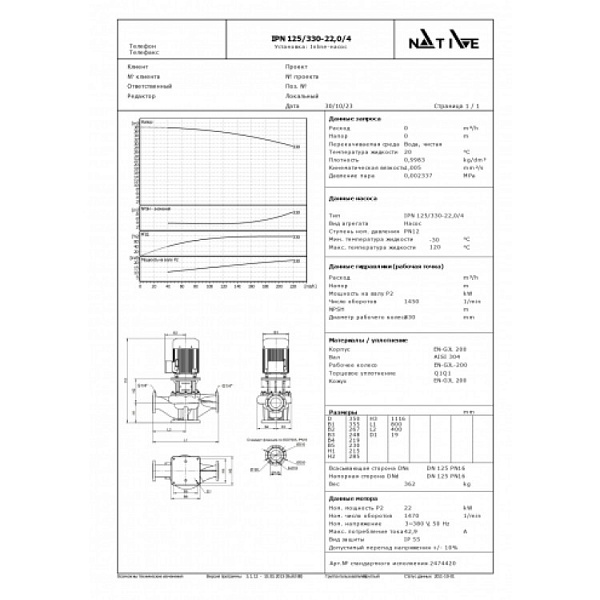 Циркуляционный насос Wilo Native IPN 125/330-22,0/4