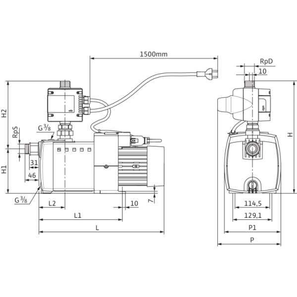 Многоступенчатый горизонтальный центробежный насос с сухим ротором, самовсасывающий, с непосредственно прифланцованным электродвигателем и автоматической системой управления насосом HiControl 1. Не требующее техобслуживания скользящее торцовое уплотнение в месте прохода вала.