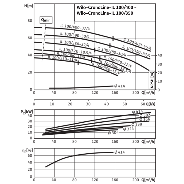 Базовое значение MEI для насосов с оптимальным КПД ≥ 0,70.КПД насоса с откорректированным рабочим колесом, как правило, ниже КПД насоса с полным диаметром рабочего колеса. За счет корректировки рабочего колеса насос настраивается на определенную рабочую точку, в результате чего снижается энергопотребление. Индекс минимальной эффективности (MEI) относится к полному диаметру рабочего колеса.При различных рабочих точках данный насос может работать эффективнее и экономичнее, если, например, управление его работой осуществляется путем регулирования переменной частоты вращения, благодаря которому насос адаптируется к характеристикам соответствующей системы.Информацию по базовому значению эффективности см. на интернет-странице www.europump.org/efficiencycharts.На насосы, потребляющие мощность > 150 кВт, или имеющие подачу QBEP < 6 м3/ч, не распространяются требования по экологическому проектированию водяных насосов. Поэтому значение MEI не указывается.