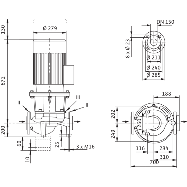 Одноступенчатый центробежный насос с сухим ротором линейного типа, предназначенный для установки в трубах или на фундаменте. Блочная конструкция с низким уровнем шума и вибрации, с фонарем и неподвижно присоединенным стандартным электродвигателем с фланцевым креплением (стандартный электродвигатель). С не зависящим от направления вращения скользящим торцевым уплотнением в кожухе с принудительным охлаждением и снижающим кавитацию рабочим колесом. Фланцы имеют штуцеры R 1/8 для измерения давления.