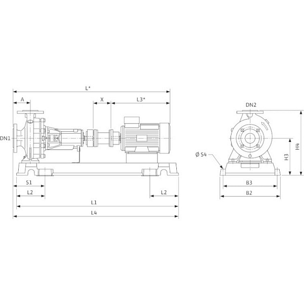 Одноступенчатый центробежный насос в качестве насоса на опорной раме согласно стандарту EN 733, с осевым всасывающим патрубком и радиальным напорным патрубком, для установки на фундаменте. Насос с опорой и прифланцованной опорой подшипника, упругой муфтой/съемной муфтой (за дополнительную плату), кожухом муфты и электродвигателем, установленными на общей опорной раме. Электродвигатель IEC с 3 термодатчиками. Уплотнение вала посредством скользящего торцового уплотнения до температуры 120 °C. Корпус из серого чугуна, вал из нержавеющей стали, рабочее колесо из серого чугуна (рабочее колесо из бронзы доступно за дополнительную плату). Электродвигатели с технологией IE3.