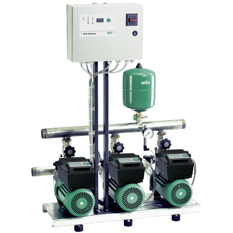 Компактная установка повышения давления согласно стандарту DIN 1988 и DIN EN 806, для прямого или опосредованного подсоединения. Состоит из нормальновсасывающих параллельно подключенных горизонтальных высоконапорных центробежных насосов из нержавеющей стали с сухим ротором, при этом каждый насос оснащен собственным частотным преобразователем. Готовность к подключению, установка на опорной раме с системой трубопроводов из нержавеющей стали, включая прибор управления со всеми необходимыми измерительными и регулировочными устройствами.