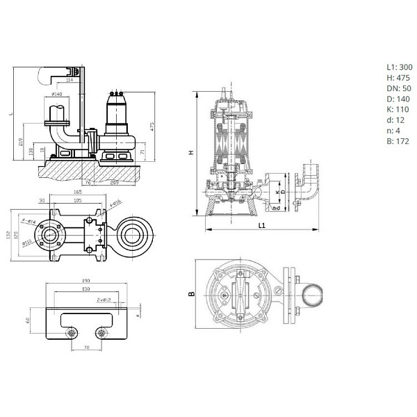 Погружной насос с режущим механизмом для откачивания сточной и грязной воды из канализационных насосных станций, шахт, котлованов и резервуаров. Насос для вертикальной мобильной или стационарной установки.