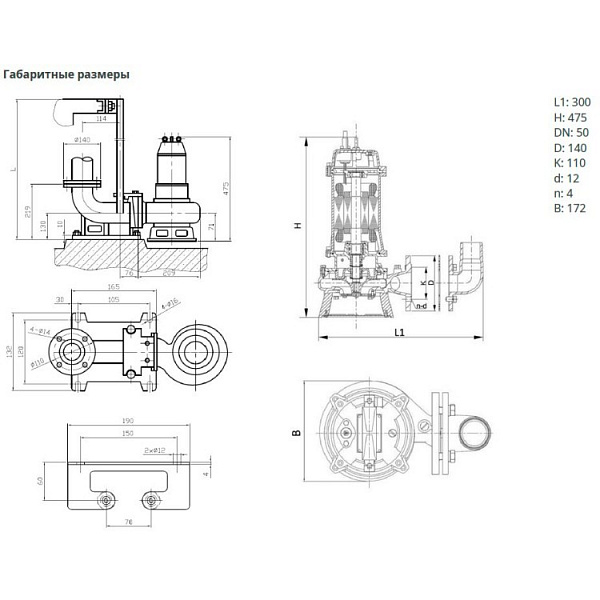 Погружной насос с режущим механизмом для откачивания сточной и грязной воды из канализационных насосных станций, шахт, котлованов и резервуаров. Насос для вертикальной мобильной или стационарной установки.