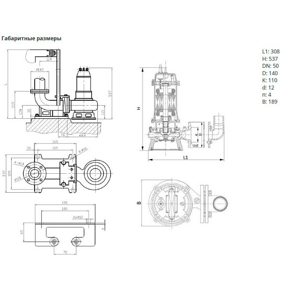 Погружной насос с режущим механизмом для откачивания сточной и грязной воды из канализационных насосных станций, шахт, котлованов и резервуаров. Насос для вертикальной мобильной или стационарной установки.