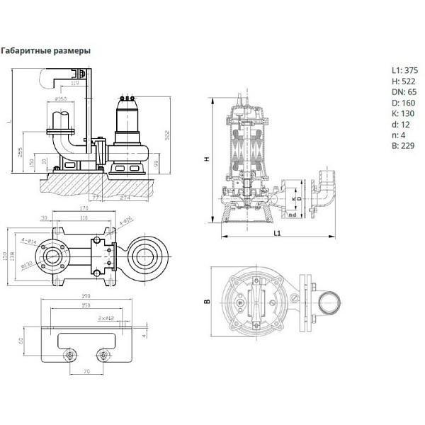 Универсальность монтажа: возможность стационарной установки при помощи устройства погружного монтажа или на донной опоре с непосредственным подсоединением трубопровода к фланцевому напорному патрубку, а также возможность мобильной установки с подсоединением шланга к специальному переходнику