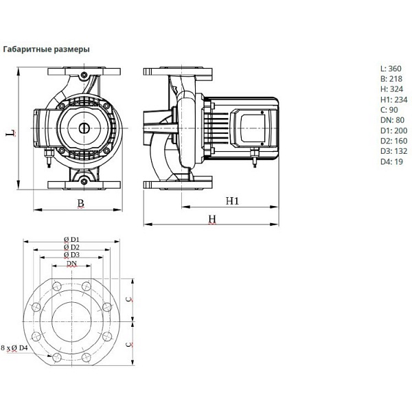 Стандартный фланцевый циркуляционный насос с мокрым ротором.