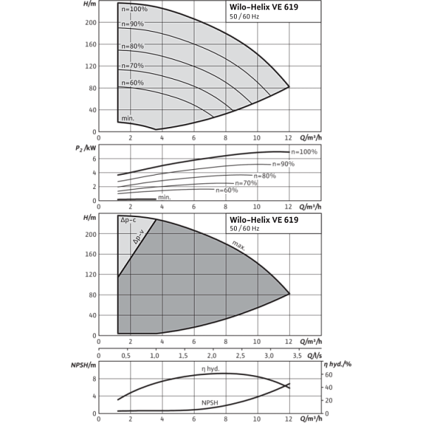 Общие указания – директивы ErP (экологический дизайн) Базовое значение MEI для насосов с оптимальным КПД ≥ 0,70.КПД насоса с откорректированным рабочим колесом, как правило, ниже КПД насоса с полным диаметром рабочего колеса. За счет корректировки рабочего колеса насос настраивается на определенную рабочую точку, в результате чего снижается энергопотребление. Индекс минимальной эффективности (MEI) относится к полному диаметру рабочего колеса.При различных рабочих точках данный насос может работать эффективнее и экономичнее, если, например, управление его работой осуществляется путем регулирования переменной частоты вращения, благодаря которому насос адаптируется к характеристикам соответствующей системы.Информацию по базовому значению эффективности см. на интернет-странице www.europump.org/efficiencycharts.На насосы, потребляющие мощность > 150 кВт, или имеющие подачу QBEP < 6 м3/ч, не распространяются требования по экологическому проектированию водяных насосов. Поэтому значение MEI не указывается. |