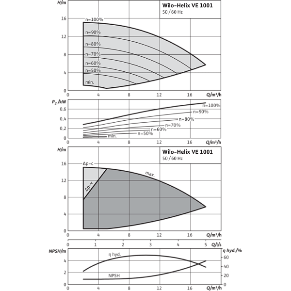 Общие указания – директивы ErP (экологический дизайн) Базовое значение MEI для насосов с оптимальным КПД ≥ 0,70.КПД насоса с откорректированным рабочим колесом, как правило, ниже КПД насоса с полным диаметром рабочего колеса. За счет корректировки рабочего колеса насос настраивается на определенную рабочую точку, в результате чего снижается энергопотребление. Индекс минимальной эффективности (MEI) относится к полному диаметру рабочего колеса.При различных рабочих точках данный насос может работать эффективнее и экономичнее, если, например, управление его работой осуществляется путем регулирования переменной частоты вращения, благодаря которому насос адаптируется к характеристикам соответствующей системы.Информацию по базовому значению эффективности см. на интернет-странице www.europump.org/efficiencycharts.На насосы, потребляющие мощность > 150 кВт, или имеющие подачу QBEP < 6 м3/ч, не распространяются требования по экологическому проектированию водяных насосов. Поэтому значение MEI не указывается. |