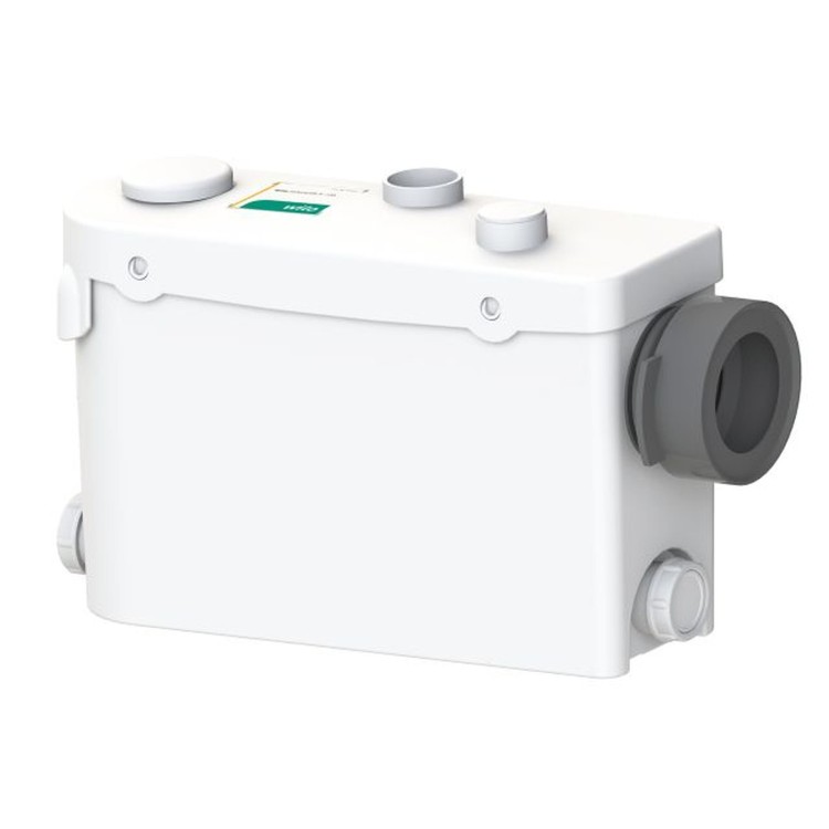 Автоматическая малогабаритная напорная установка для водоотведения с режущим механизмом, встроенным обратным клапаном, фильтром с активированным углем, эластичным напорным патрубком, с возможностью подсоединения одного унитаза, а также – в зависимости от модели – двух или трех дополнительных источников сточных вод. Вентиляция осуществляется через встроенный фильтр с активированным углем; очищенный воздух без запаха поступает в помещение установки.