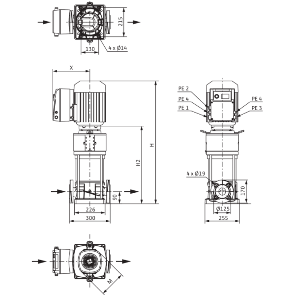 Высокоэффективный высоконапорный центробежный насос вертикального исполнения с линейными подсоединениями, электродвигателем класса IE4 согласно IEC и с встроенным частотным преобразователем с воздушным охлаждением. Встроенный частотный преобразователь позволяет осуществлять плавную регулировку частоты вращения, давления и ПИД-регулировку.