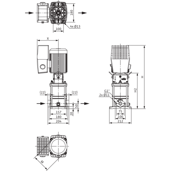 Высокоэффективный высоконапорный центробежный насос вертикального исполнения с линейными подсоединениями и с встроенным частотным преобразователем с воздушным охлаждением. Встроенный частотный преобразователь позволяет осуществлять плавную регулировку частоты вращения и давления.