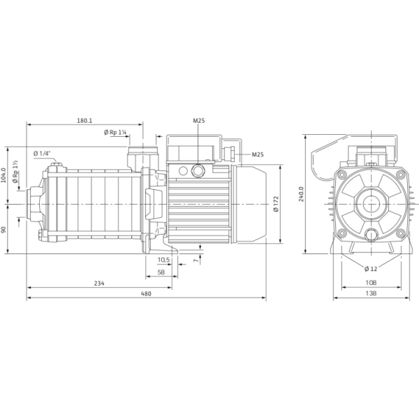 Данный насос имеет компактную конструкцию и оснащен сквозным насосным валом электродвигателя и не зависящим от направления вращения скользящим торцовым уплотнением. Секции, рабочие и ведущие колеса выполнены из нержавеющей стали, а корпус насоса выполнен из чугуна с катафорезным покрытием.