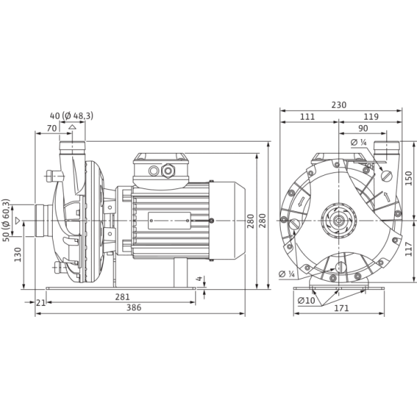 Одноступенчатый низконапорный центробежный насос в блочном исполнении с аксиальным всасывающим патрубком и радиально расположенным напорным патрубком.