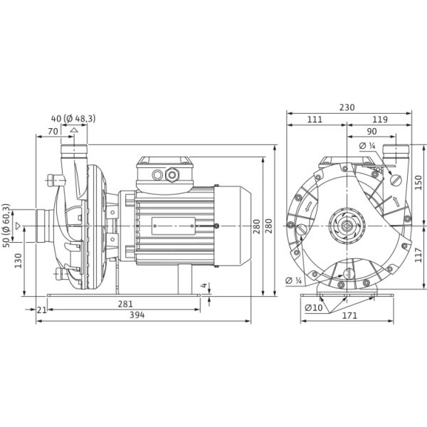 Одноступенчатый низконапорный центробежный насос в блочном исполнении с аксиальным всасывающим патрубком и радиально расположенным напорным патрубком.