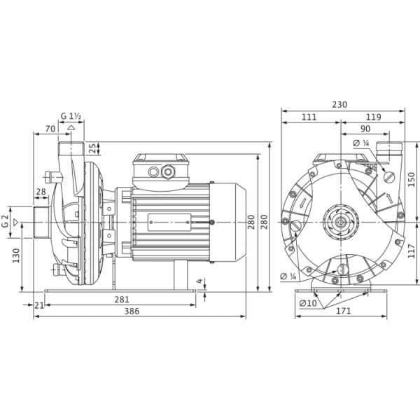 Одноступенчатый низконапорный центробежный насос в блочном исполнении с аксиальным всасывающим патрубком и радиально расположенным напорным патрубком.