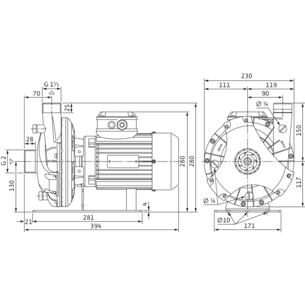 Одноступенчатый низконапорный центробежный насос в блочном исполнении с аксиальным всасывающим патрубком и радиально расположенным напорным патрубком.