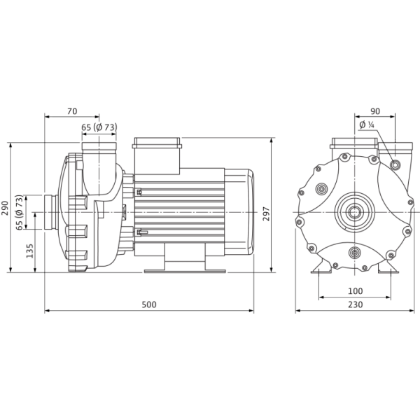 Одноступенчатый низконапорный центробежный насос в блочном исполнении с аксиальным всасывающим патрубком и радиально расположенным напорным патрубком.