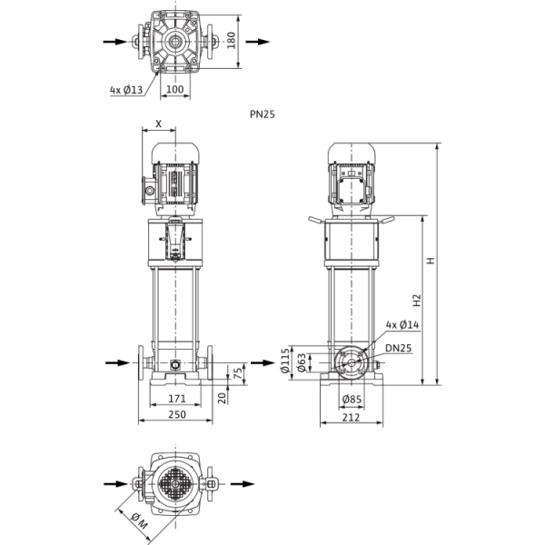 25 = 25 бар (фланец PN 25) |