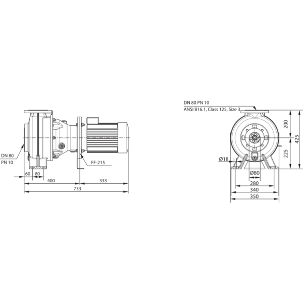 Одноступенчатая центробежная гидравлическая часть со стандартным электродвигателем IEC компактной блочной конструкции для горизонтальной установки в непогруженном состоянии для перекачивания загрязненной воды и неочищенных сточных вод с фекалиями. Гидравлическая часть с аксиальным всасывающим патрубком, радиальным напорным патрубком и подшипниковым узлом в виде законченного блока. Подшипниковый узел с камерами уплотнений и сбора утечек для улавливания поступающей перекачиваемой жидкости посредством уплотнений, расположенных со стороны рабочей среды и со стороны электродвигателя. Гидравлический корпус, рабочее колесо и подшипниковый узел из серого чугуна, уплотнение со стороны перекачиваемой жидкости посредством скользящего торцового уплотнения, не зависящего от направления вращения, уплотнение со стороны электродвигателя посредством радиального манжетного уплотнения. Камера уплотнений дополнительно может контролироваться внешним стержневым электродом. Стандартный электродвигатель IEC в исполнении B5 в виде трехфазного электродвигателя с датчиком контроля температуры обмотки и классом эффективности IE3.