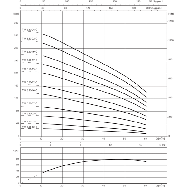 Базовое значение MEI для насосов с оптимальным КПД ≥ 0,70.КПД насоса с откорректированным рабочим колесом, как правило, ниже КПД насоса с полным диаметром рабочего колеса. За счет корректировки рабочего колеса насос настраивается на определенную рабочую точку, в результате чего снижается энергопотребление. Индекс минимальной эффективности (MEI) относится к полному диаметру рабочего колеса.При различных рабочих точках данный насос может работать эффективнее и экономичнее, если, например, управление его работой осуществляется путем регулирования переменной частоты вращения, благодаря которому насос адаптируется к характеристикам соответствующей системы.Информацию по базовому значению эффективности см. на интернет-странице www.europump.org/efficiencycharts.