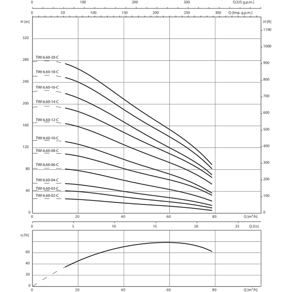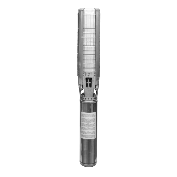 Многоступенчатый погружной насос с муфтой NEMA 4" или 6" и радиальными или полуаксиальными рабочими колесами в секционном исполнении. Встроенный обратный клапан. Все детали, соприкасающиеся с перекачиваемой жидкостью, выполнены из коррозионностойких материалов.