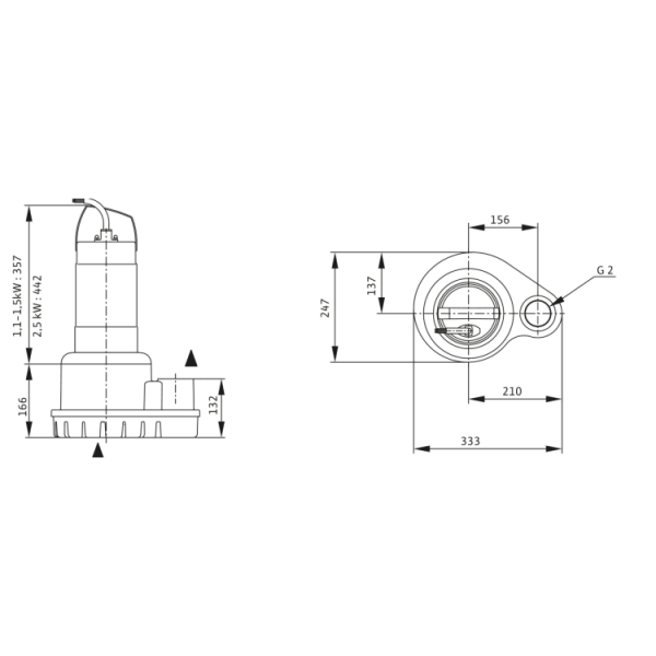 Погружной дренажный насос выполнен как блочный агрегат для мобильной установки в погруженном состоянии.