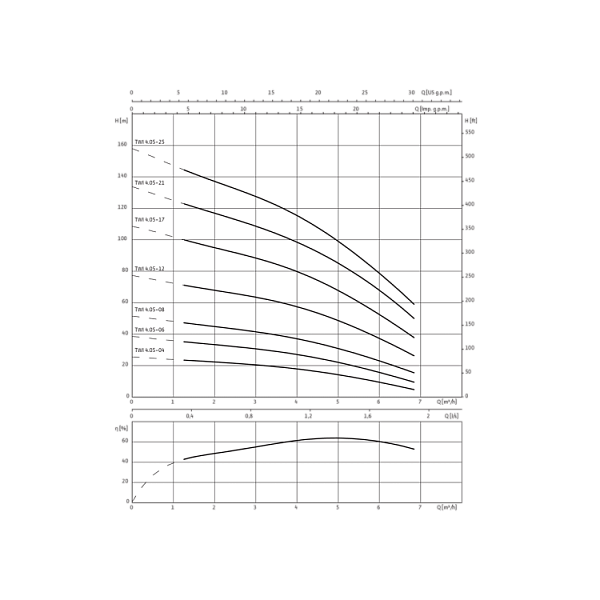 - Подсоединение к напорному патрубку: Rp 1¼ - Rp 2