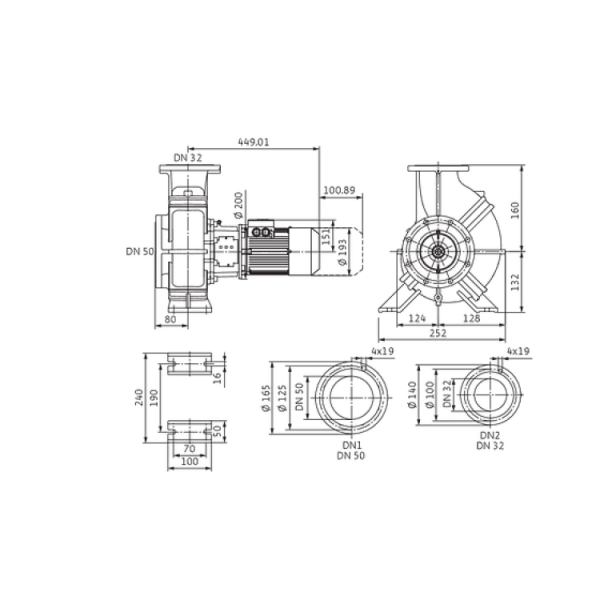 Одноступенчатый центробежный насос с сухим ротором блочного типа для установки на фундаменте. Блочное исполнение с низким уровнем шума и вибрации с промежуточным корпусом и неподвижно присоединенным унифицированным (стандартным) электродвигателем. С не зависящим от направления вращения сильфонным скользящим торцевым уплотнением с принудительным омыванием (начиная с исполнения «37 кВт/4 полюса» — опционально с картриджным торцевым уплотнением в системе Back-Pull-Out для замены скользящего торцевого уплотнения без демонтажа электродвигателя) и снижающим кавитацию рабочим колесом. Фланцы со штуцерами для измерения давления R 1/8. Корпус насоса и фонарь имеют катафорезное покрытие. Серийные электродвигатели с технологией IE3. Насосы с электродвигателями ≥ 5,5 кВт серийно оснащаются термодатчиком для защиты электродвигателя. Клеммная коробка электродвигателя ≤ 7,5 кВт может быть изготовлена из металла или синтетического материала. Если для электродвигателя требуется металлическая клеммная коробка, закажите соответствующее специальное исполнение. Клеммные коробки электродвигателя > 7,5 кВт всегда из металла.
